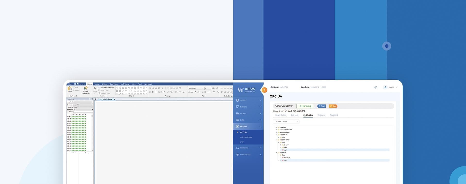 IIoT 通訊網關,輕松整合不同品牌間PLC通訊,并轉換成 Modbus / OPC UA /MQTT 標準通訊協議,cMT G系列物聯網關滿足工廠整合的一切需要。